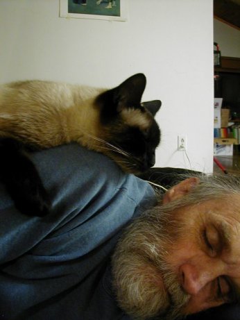 Here's how Kitty and I take a nap. I lay on the floor and he lays on me.