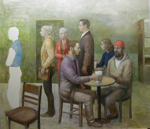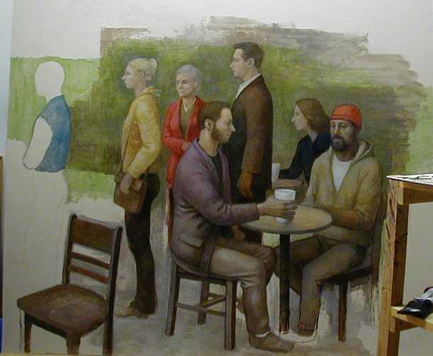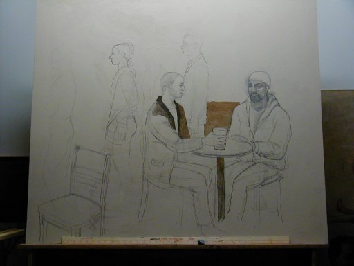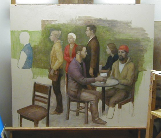Wednesday, April 6, 2005. Here is the painting as it stands this morning. Who are all these lunkheads? Figments, that's what they are. Figments of my imagination.