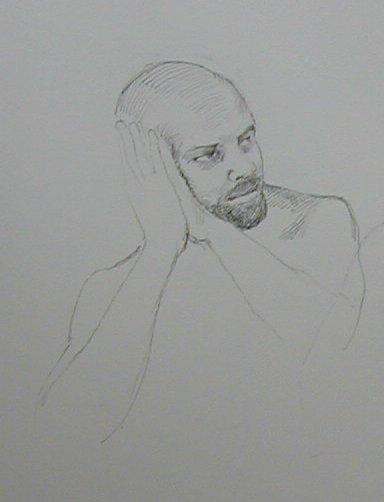 Here's a couple drawings of the model we had Wednesday. He brought his own reggae music with him. As you can see, his head is shaved.