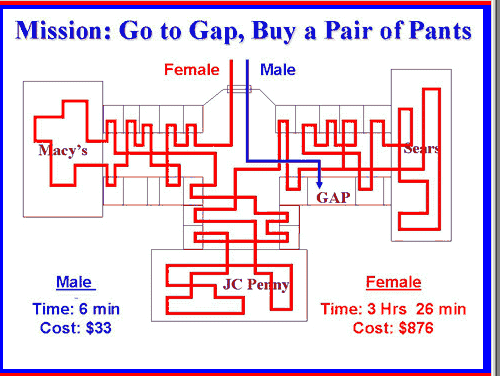 This diagram compares the shopping habits of men and women.