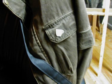 Wednesday June 29, 2005. R___ has noticed the extent to which some of my shirts are covered with dog and cat hairs. So this morning he said, "I got you a present," and pulled a lint brush out of his jacket. It was still mounted on the cardboard display card. I tried it. It takes a while to learn how to use it, steep learning curve. If you swipe in one direction it will pick up lint and hairs. But if you swipe it in the opposite direct ion it deposits all the stuff it collected. R___ explained that you have to wipe it off on something else. I reached for his pant leg.