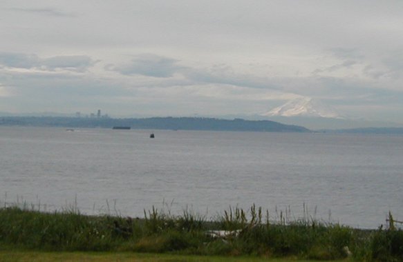 Here is the view of Seattle and Mount Rainier at 5am from Camp Indianola.